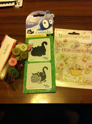 Basic grey buttons £1! and a very sweet cat die £1.50! and look at that stamp i found whilst rooting! he's adorable never seen it before so had to have!